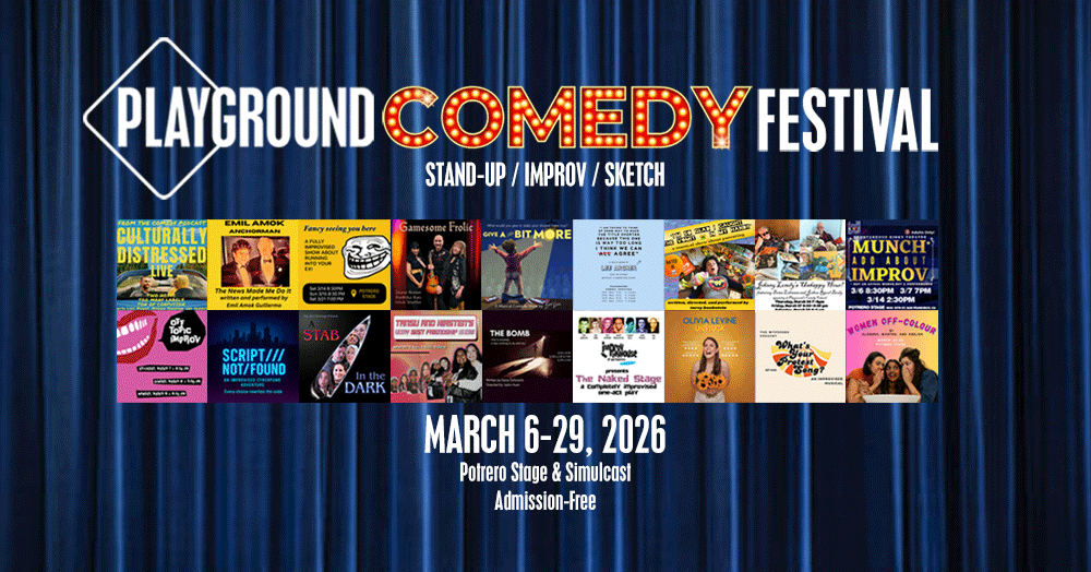 PlayGround has announced the lineup for its first annual PlayGround Comedy Festival, an eclectic lineup of innovative performances including stand-up, sketch, improv, comedic plays, and more! Performances run March 6-29, 2026 (Thurs-Mon), presented live at San Francisco’s Potrero Stage and simulcast online. The festival features 18 hilarious acts and 60 performances produced by Lee Archer, […]